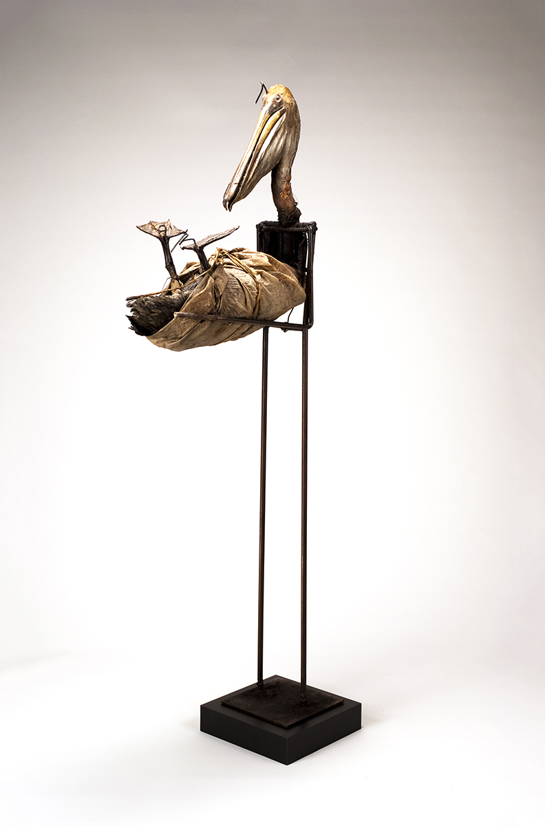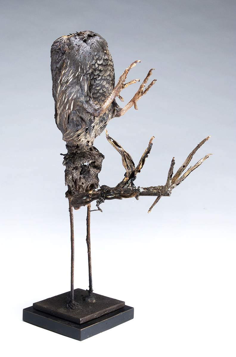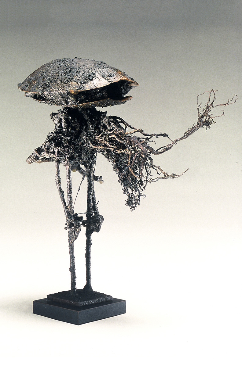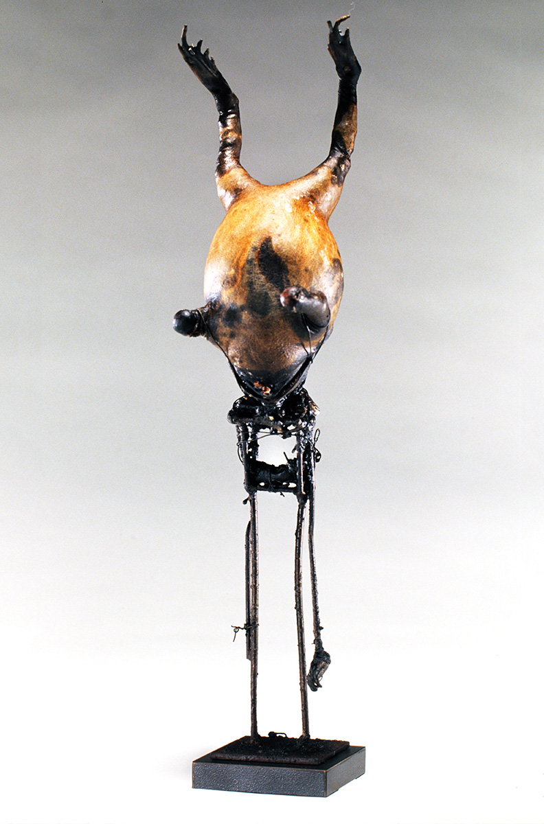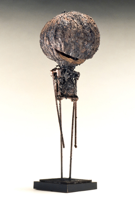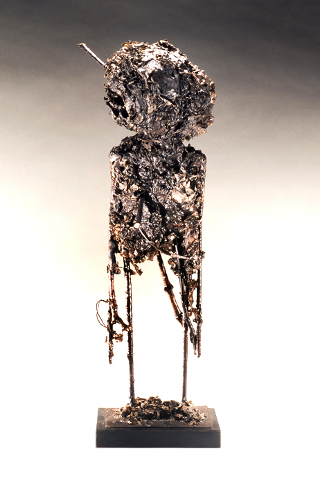 (Materials: manipulated found materials, wax and wire over welded steel)