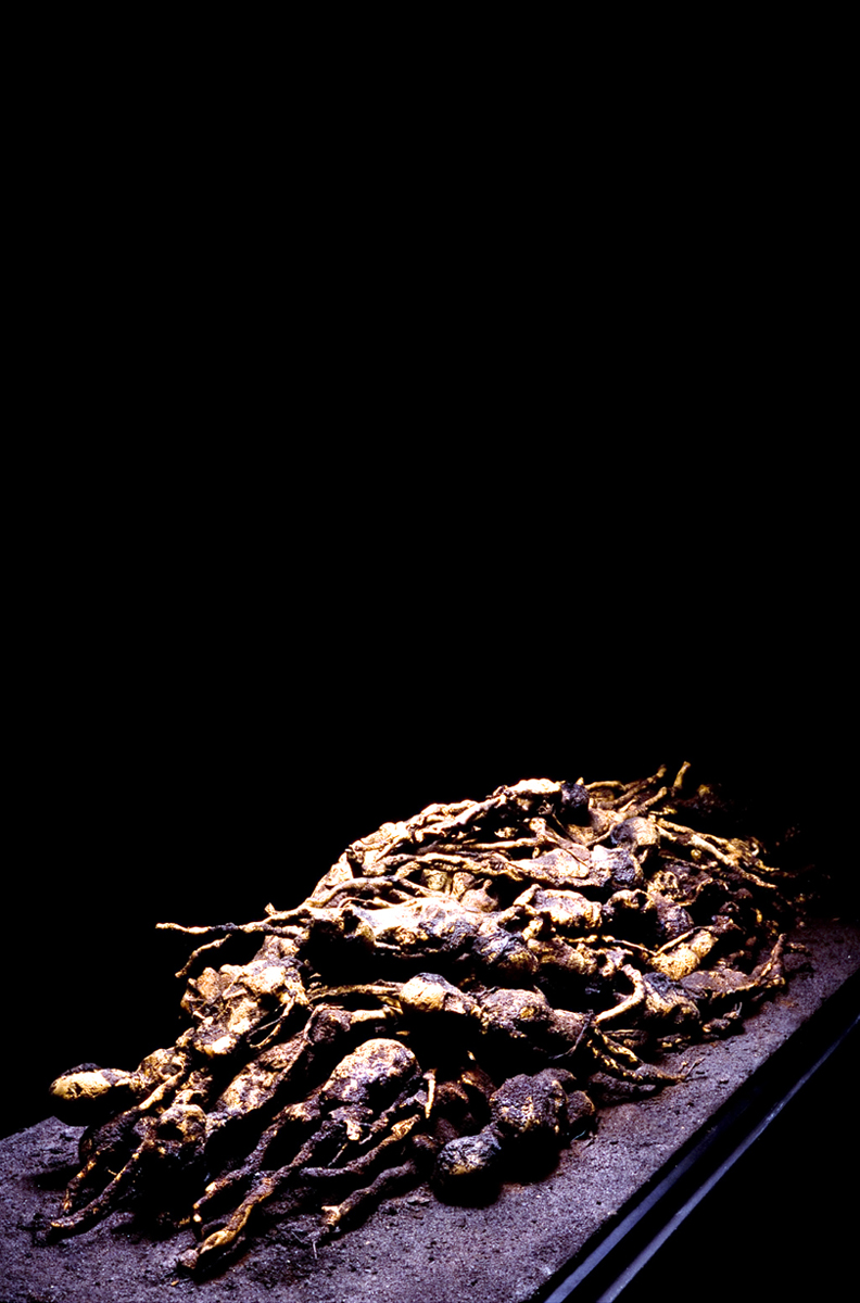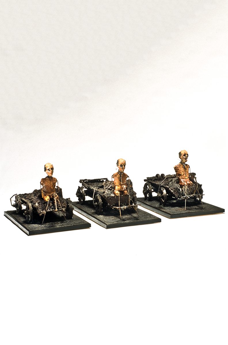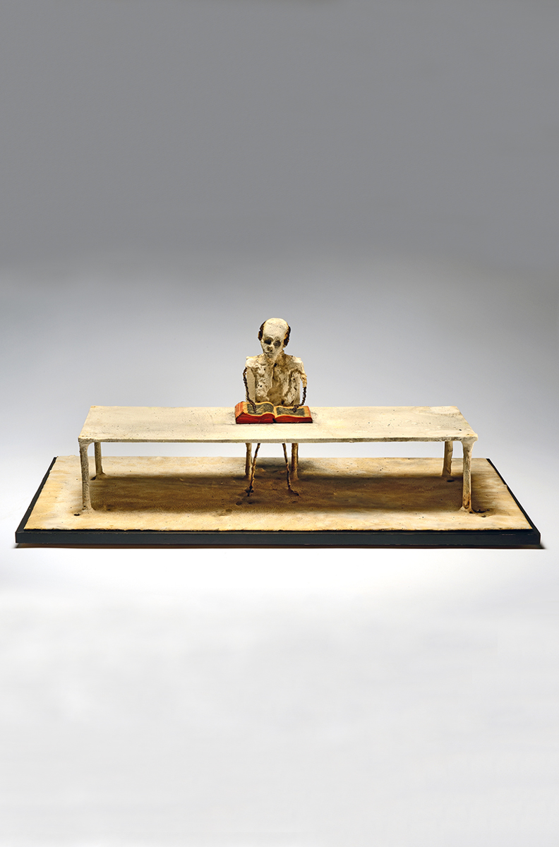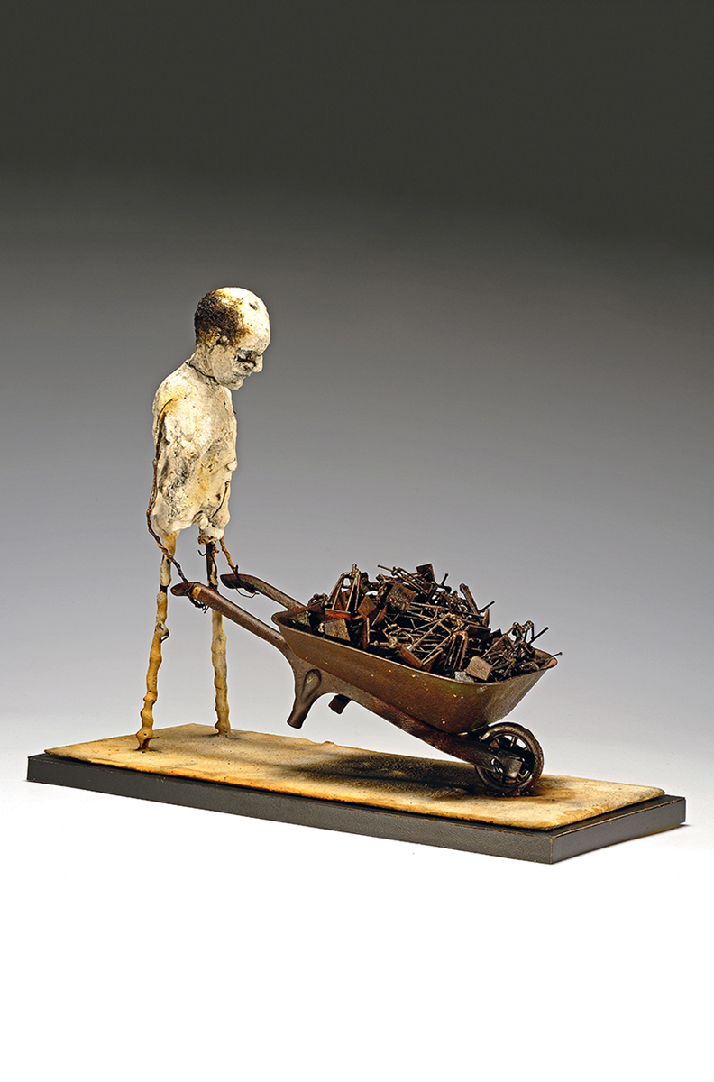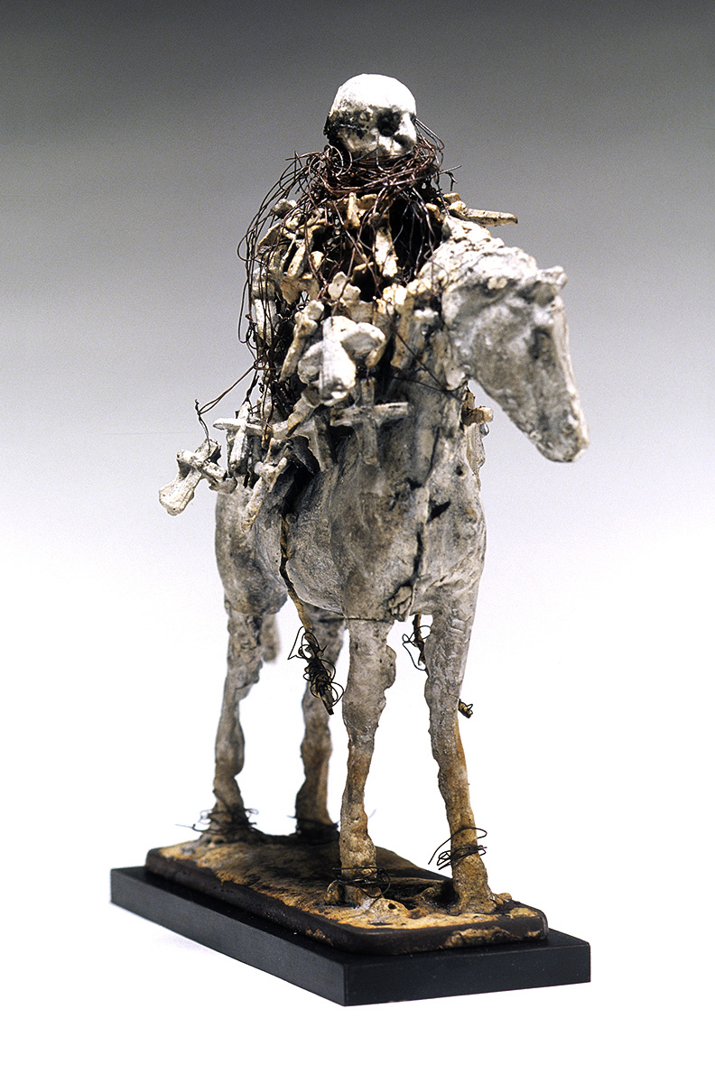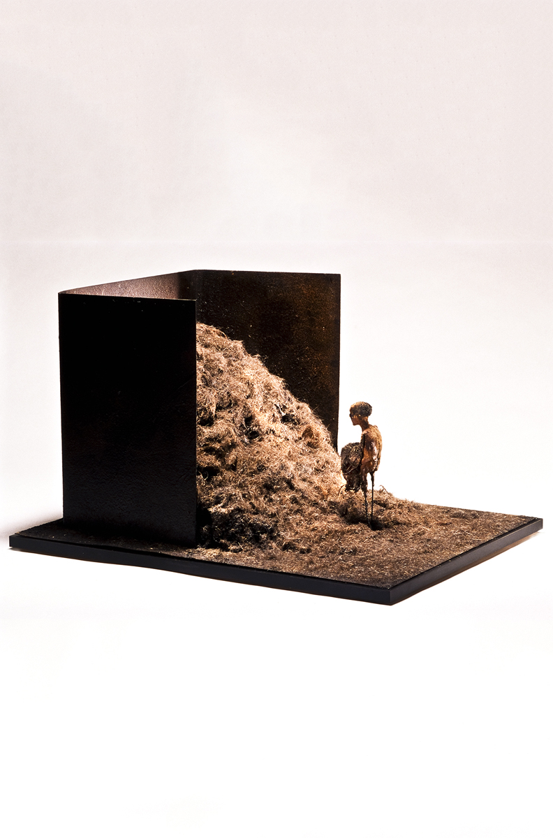 (Materials: Cast and sandblasted plaster, wax, and wire, hair graphite - and found objects if applicable)