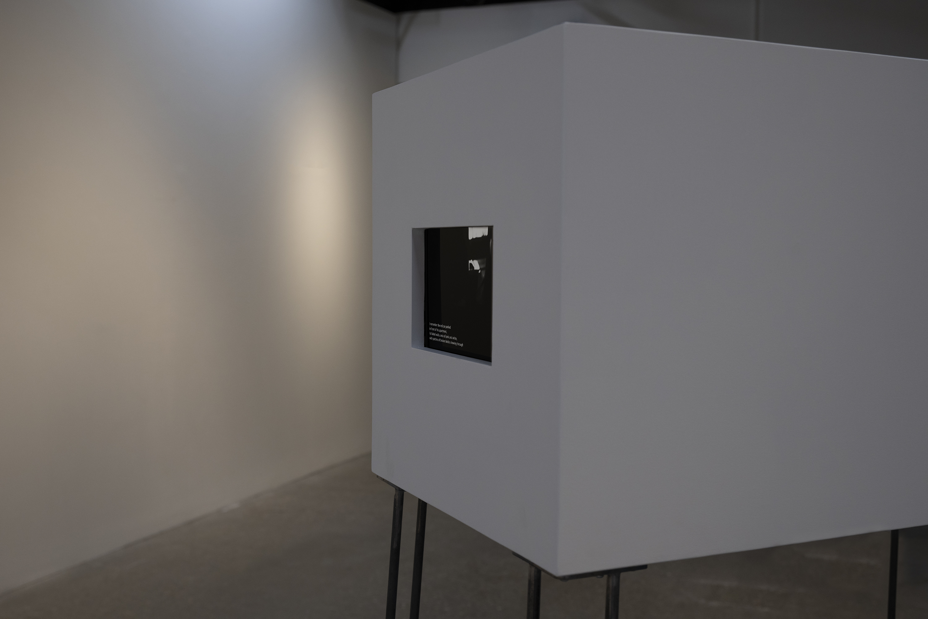This physical installation revisits the 2005 video work, The Practice of Seeing the Self, to re-examine the interplay between presence and absence across two places and explore the evolution of memory over time. Twenty years later, what was once a plain observation of presence has become more nuanced—shaped by atmosphere, surroundings, and sensory details that sharpen the act of remembering. Yet memory and the present cannot coexist fully; they remain inherently separate. This tension is visualized through two videos placed on opposite sides of a box, embodying the conceptual divide and inviting reflection on the shifting nature of memory and presence.
