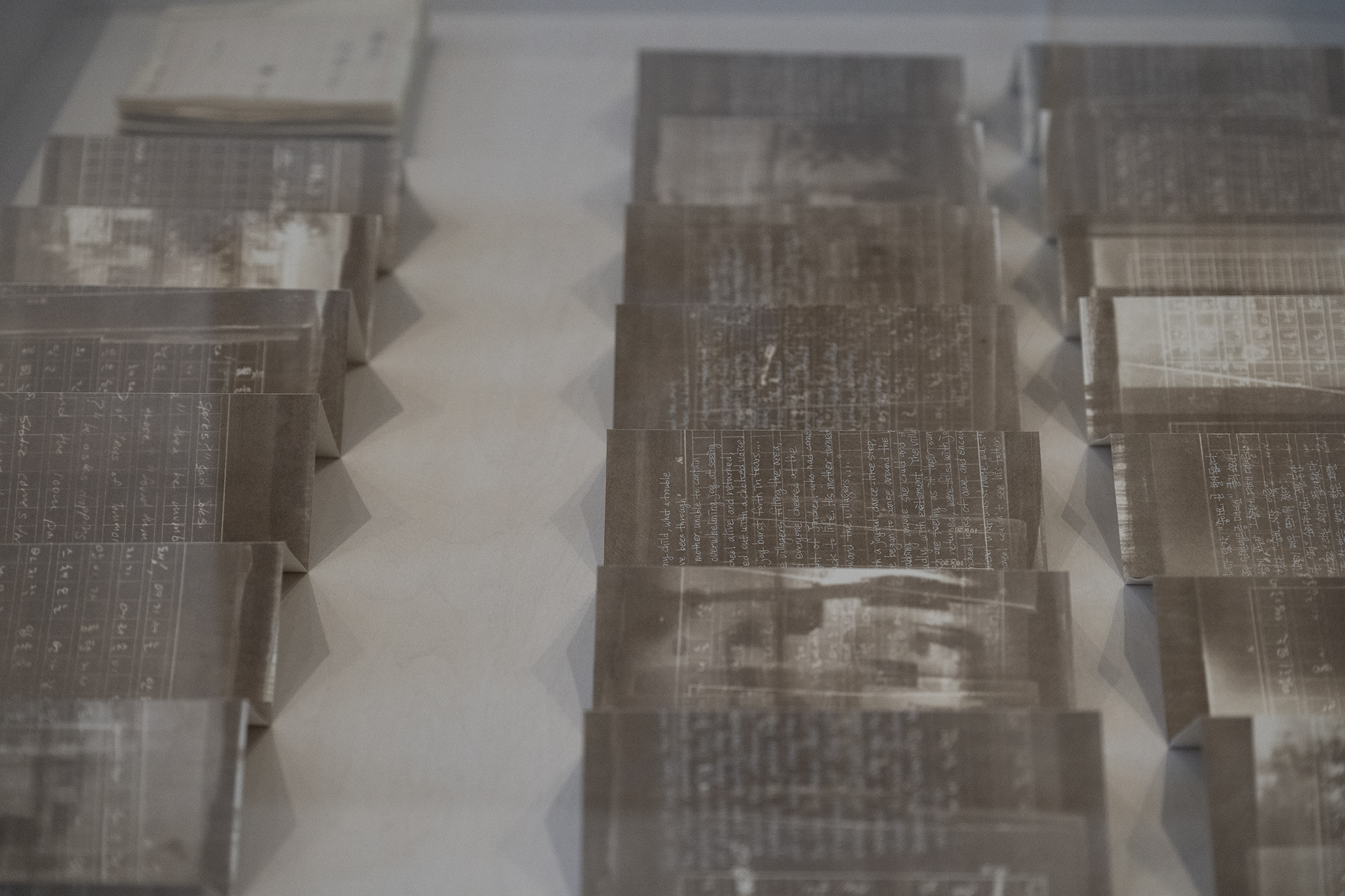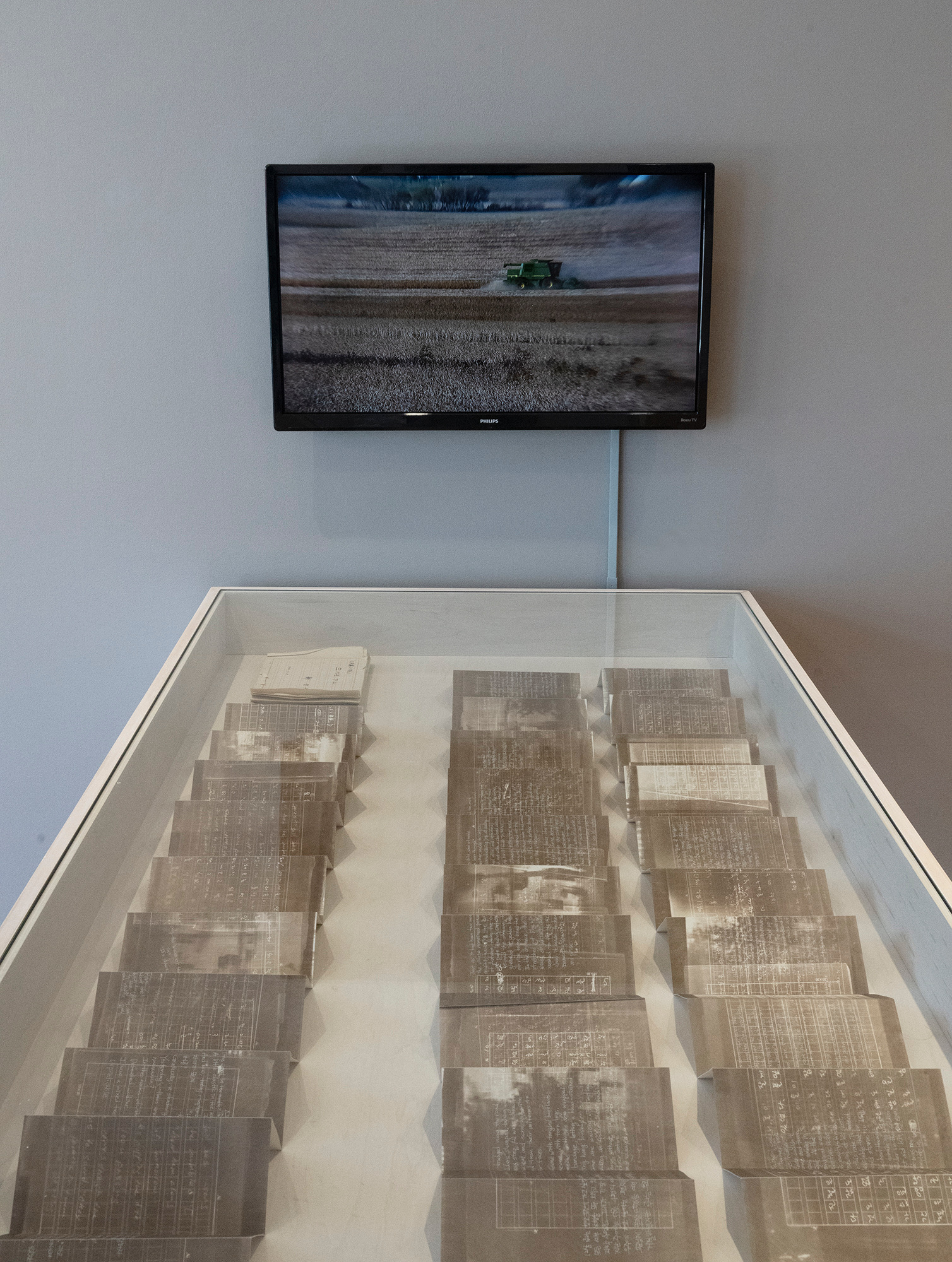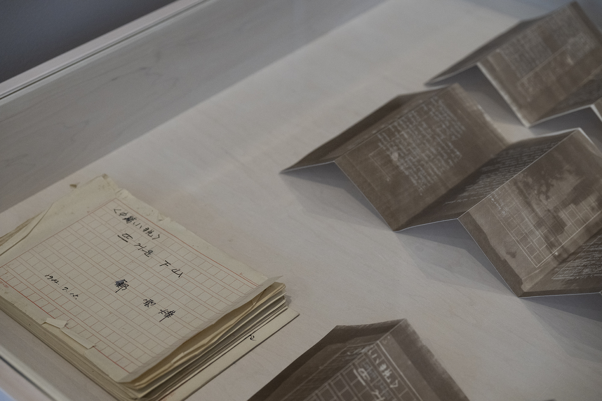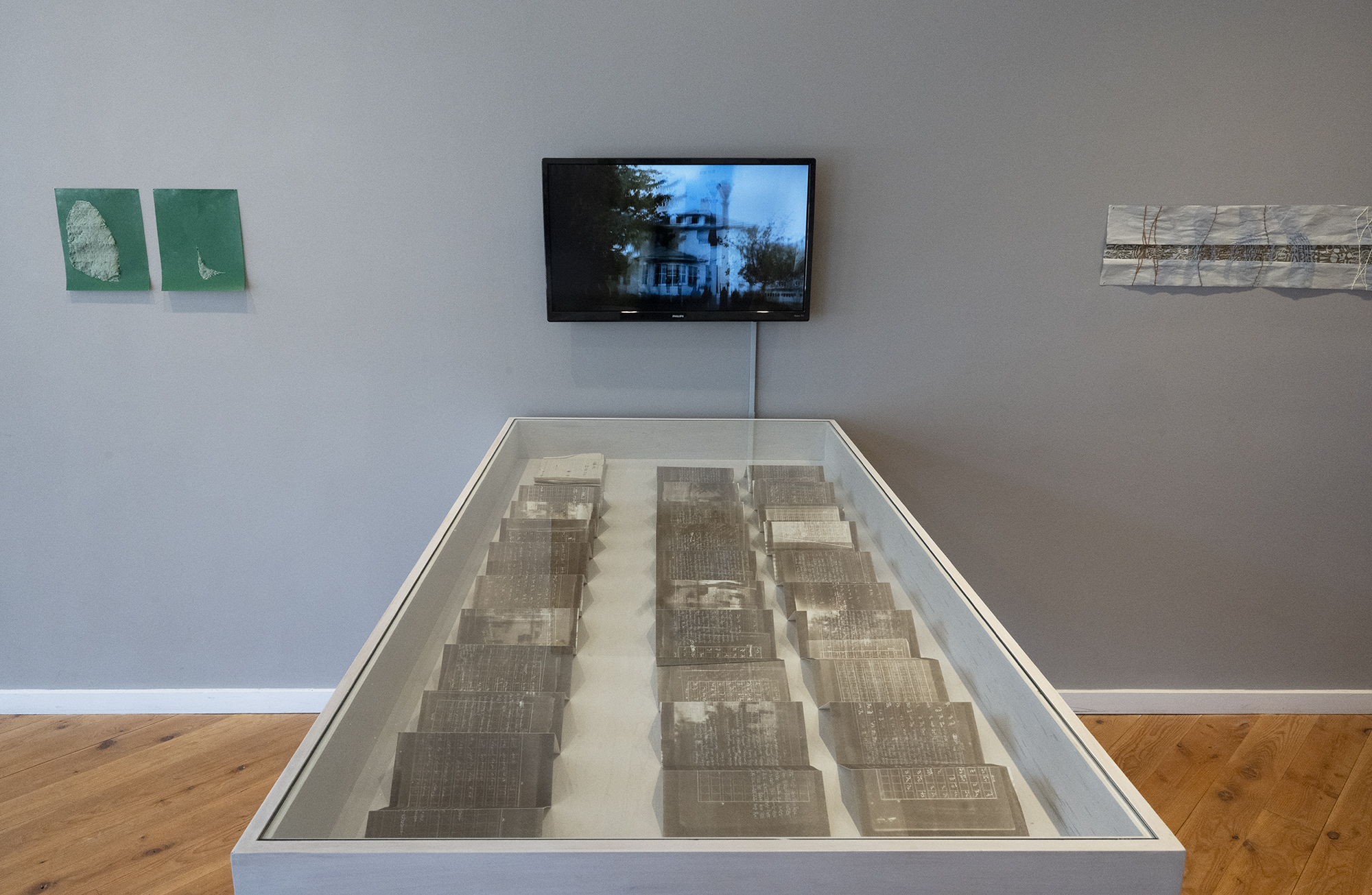 This installation paired the video Incubating Home with an accordion book and unpublished manuscript of a war-time novel written by the artist’s father. Conceived in response to an exhibition on the theme of translation, the work entangles narrative and language across three generations. The artist book becomes a site of convergence: within its folds, scans of the father’s handwritten pages are interlaced with stills from Incubating Home and fragments of a fantastical, interplanetary travelogue authored by the artist’s young daughter. Together, these elements meditate on the ambiguities and imaginative leaps that emerge in the act of carrying meaning across time, culture, and kinship.