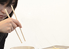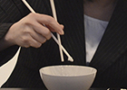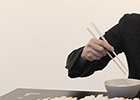 In this performance, the audience was invited to join me at the dinner table. They then tried to follow a set of instructions on the proper use of chopsticks being dictated to them by an audio recording.