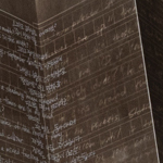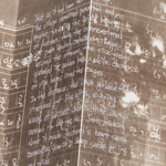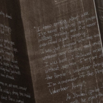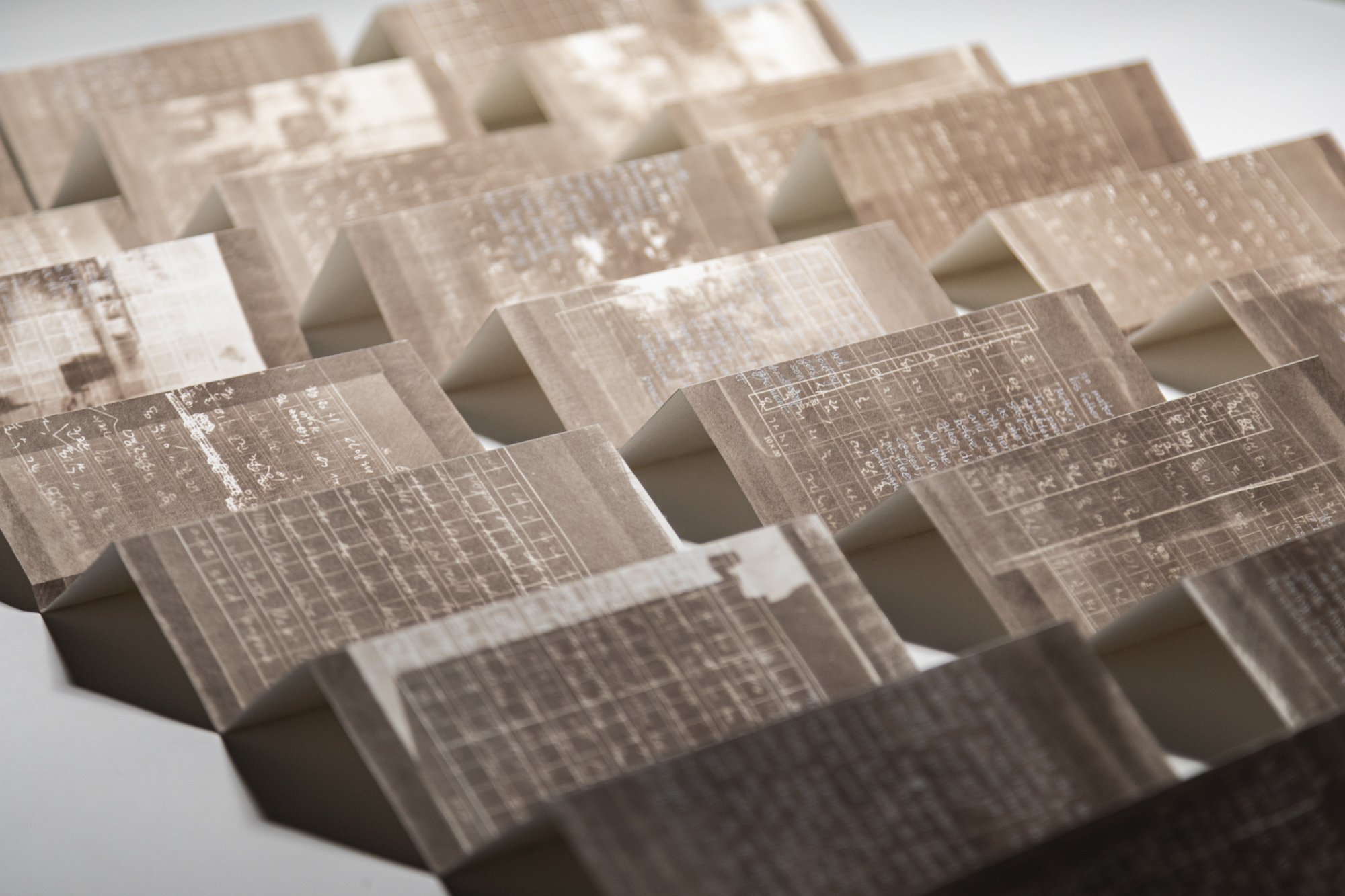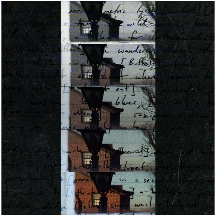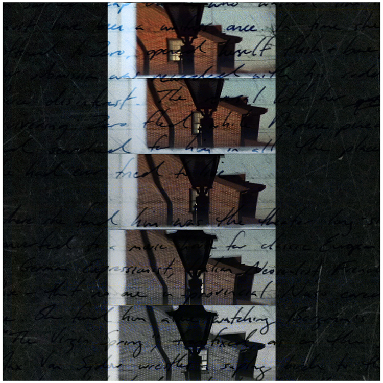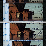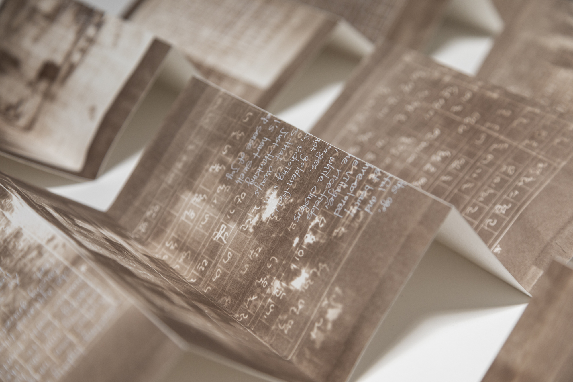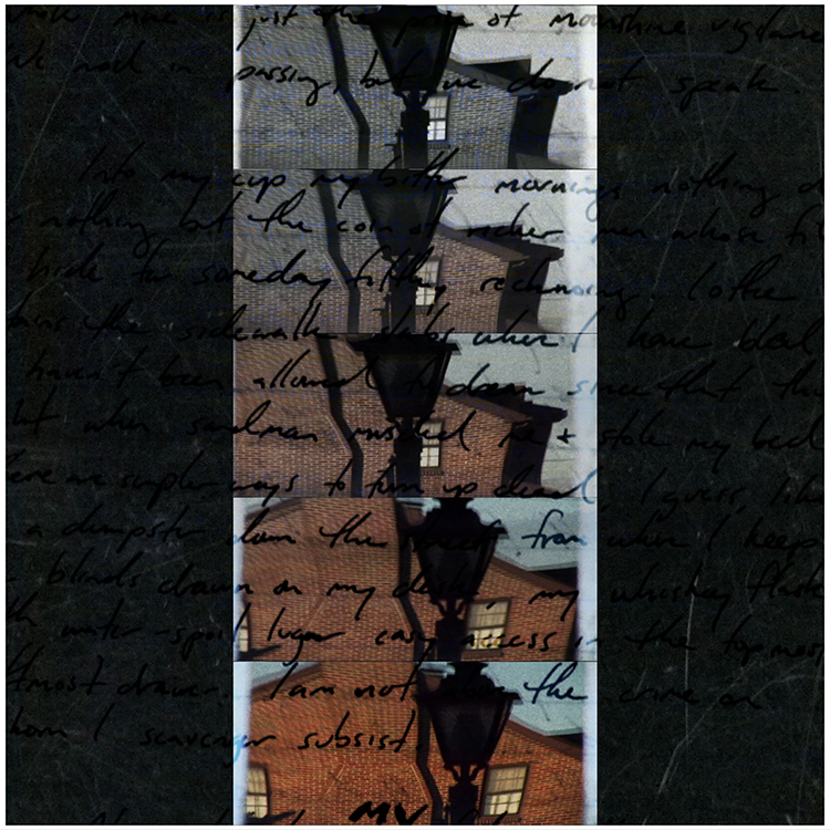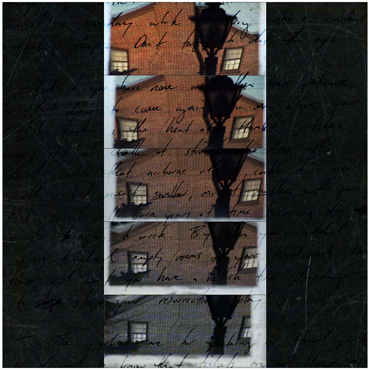 A hand-made, three-volume accordion book contact printed in Van Dyke brown. An unpublished manuscript written by the artist’s father serves as a point of departure. The handwritten pages recount the story of a gravely wounded soldier struggling to return home to his mother. As he drifts in and out of a hallucinatory state, tensions build between the north and south and death becomes inevitable. This narrative is visually overlaid by a dreamscape of distorted imagery, conjuring elusive notions of home, extracted from a video work by the artist. Inscribed atop both layers is a fantastical, interstellar travelogue written by the artist’s young child. Together, these strata form a palimpsest of wandering, identity, and the unresolvable longing for return.