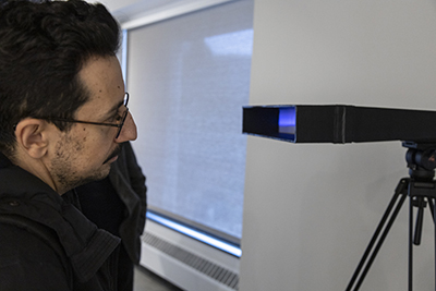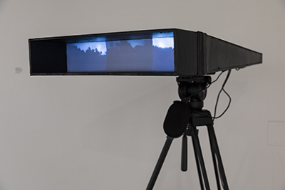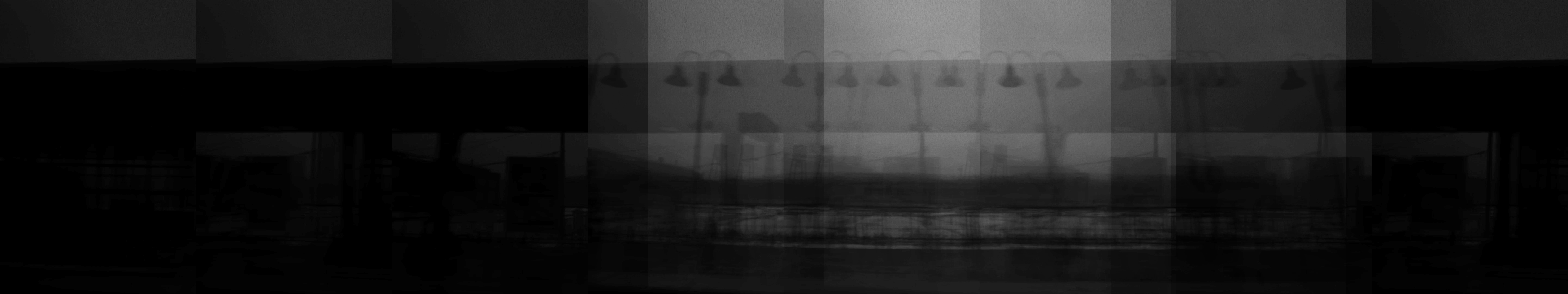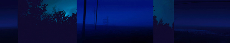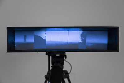 “White Noise” is an abstraction of the social and political concerns currently reverberating throughout the United States. A video that travels through an anonymous landscape is juxtaposed with the increasingly chaotic sounds of newscasts and punditry. The banal time and space of everyday life take on a surreal atmosphere as the radio gives voice to a stream of issues pulling at our social fabric, while the image of the landscape fragments and falls out of sync with itself.