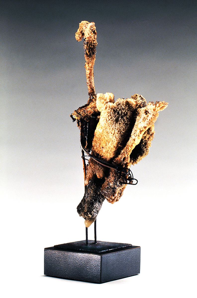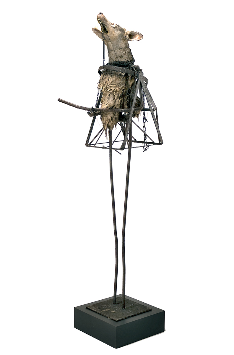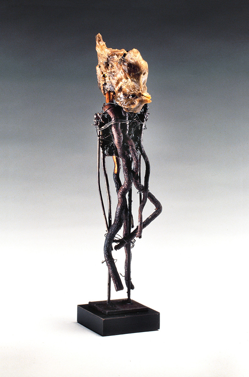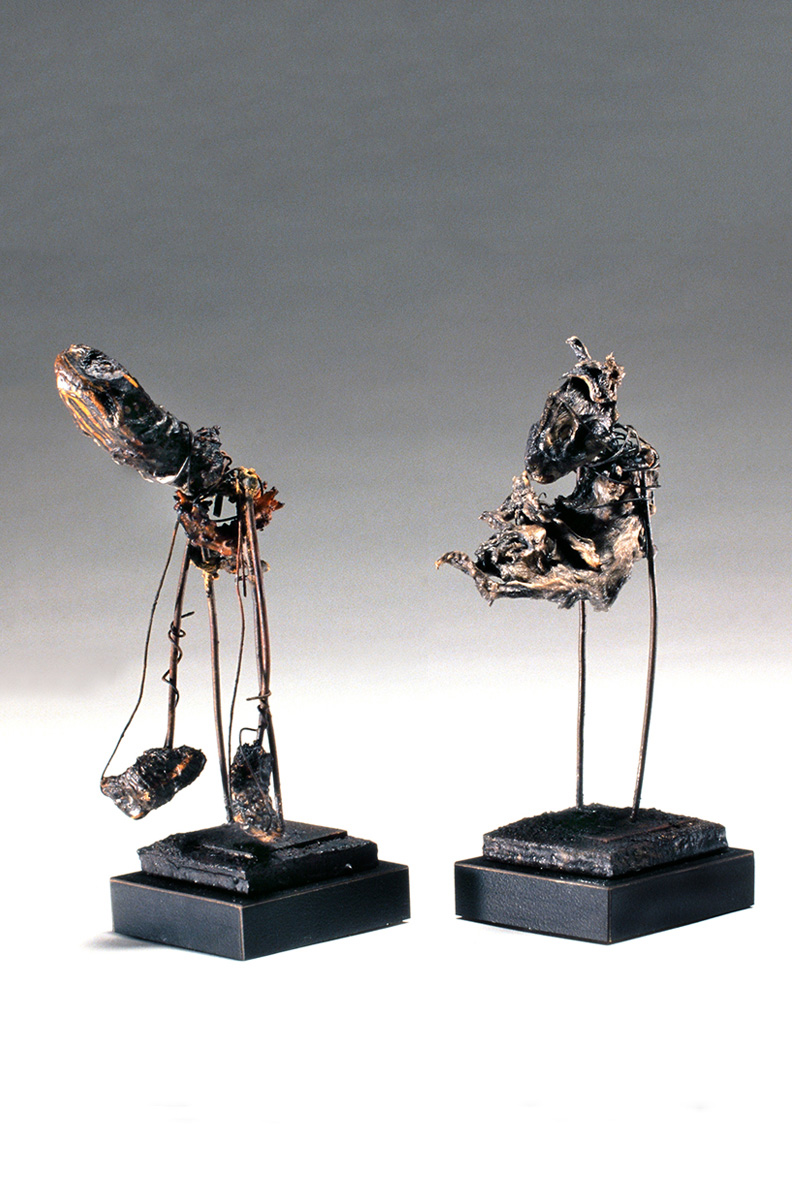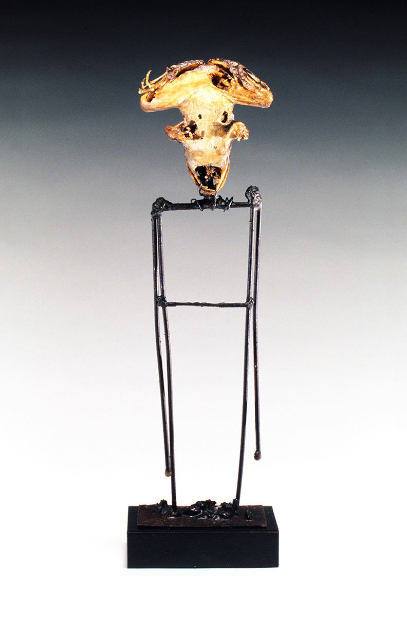 (Materials: manipulated found materials, wax and wire over welded steel)