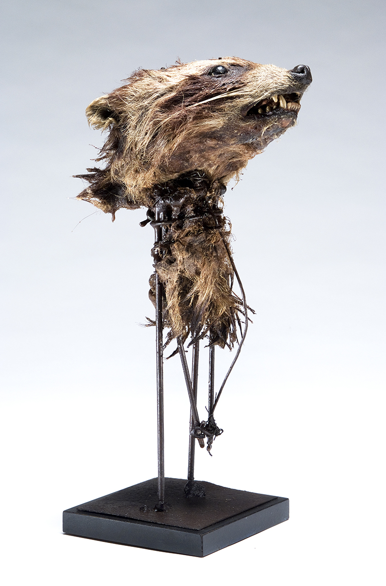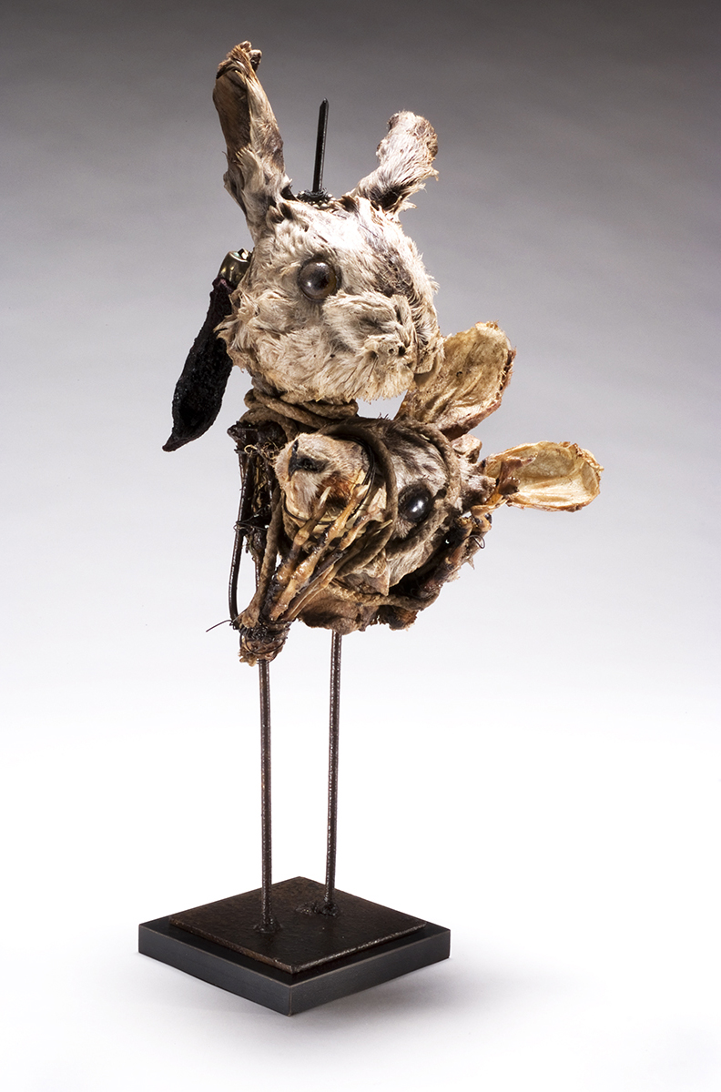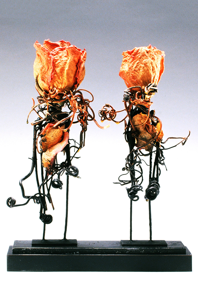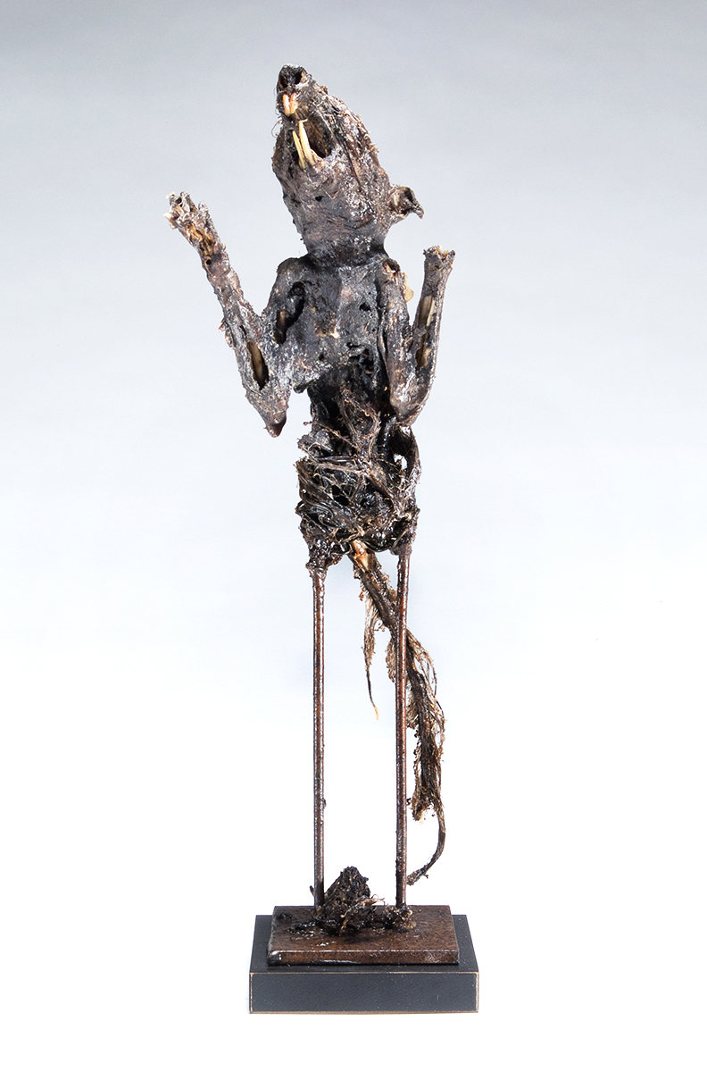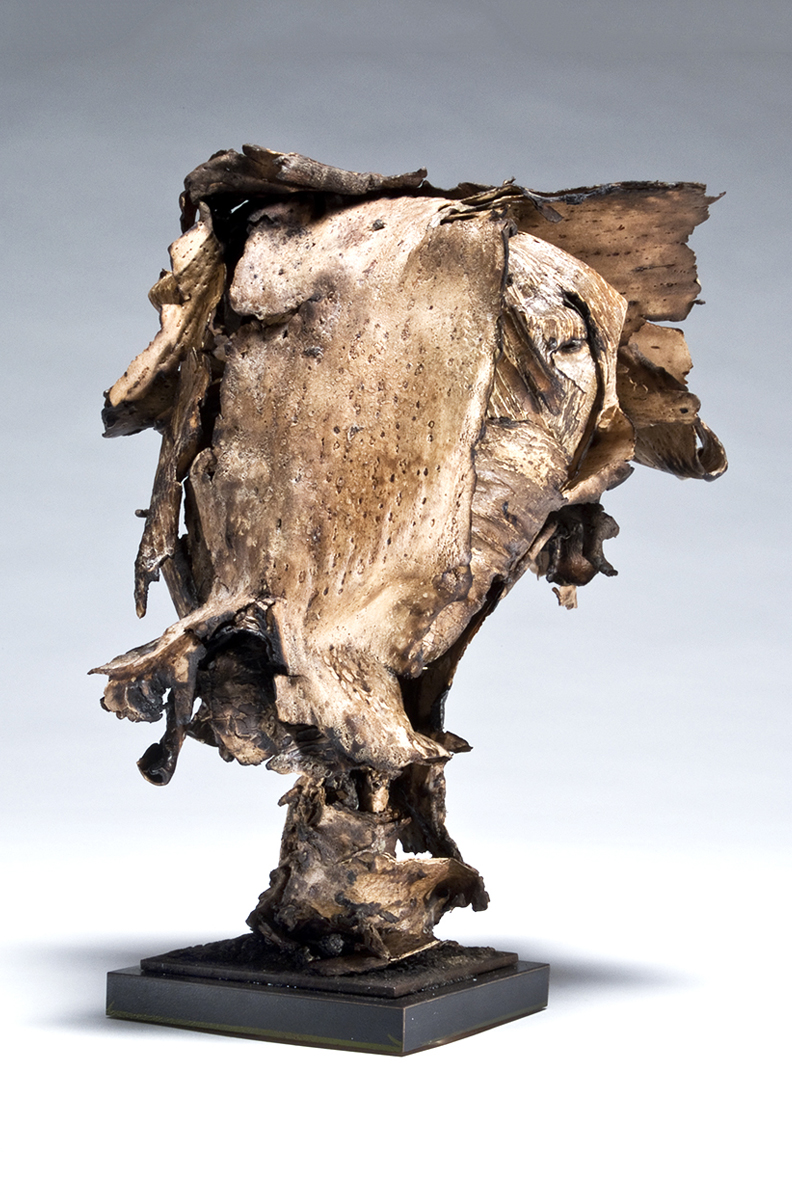 (Materials: manipulated found materials, wax and wire over welded steel)