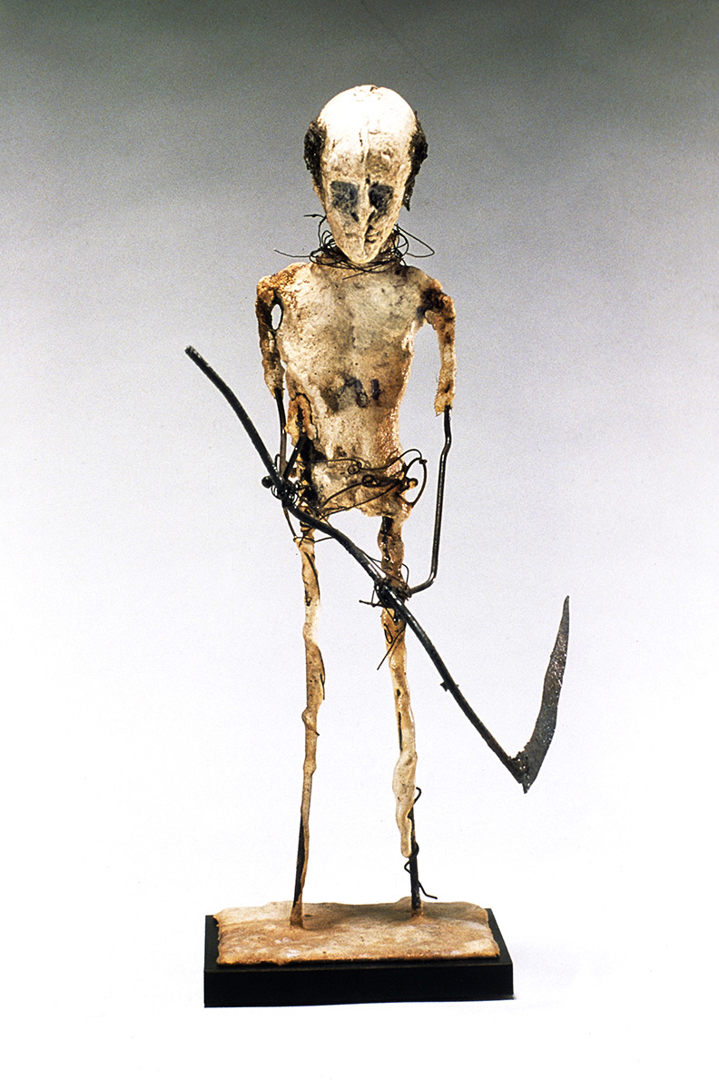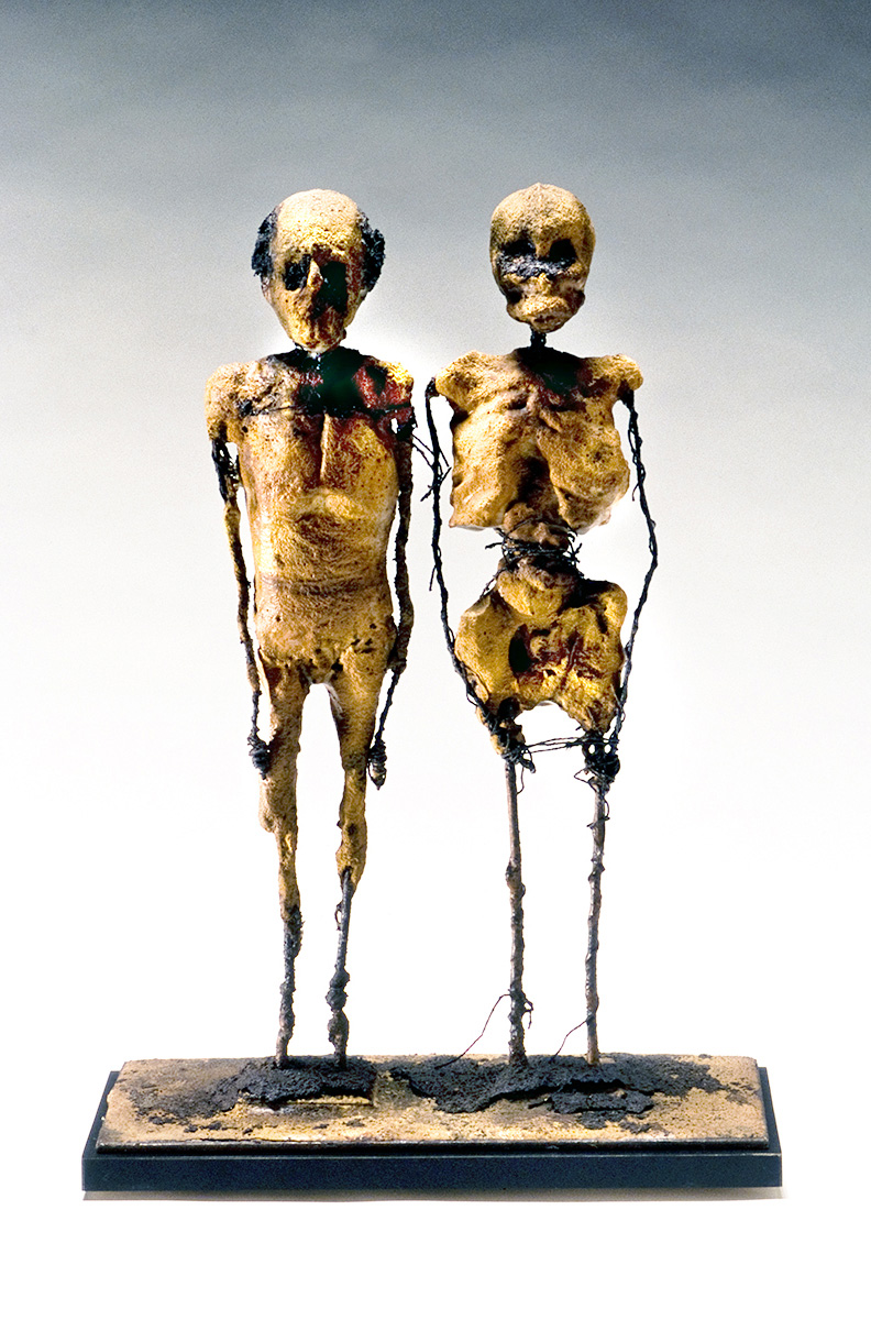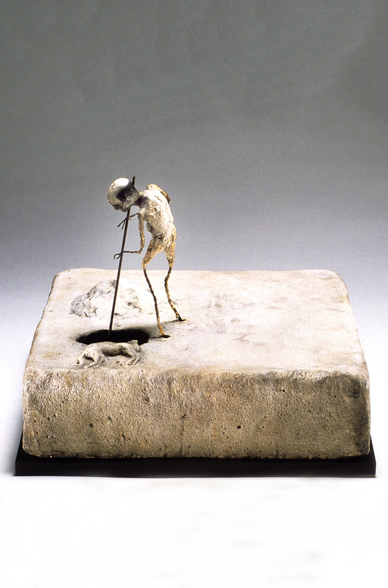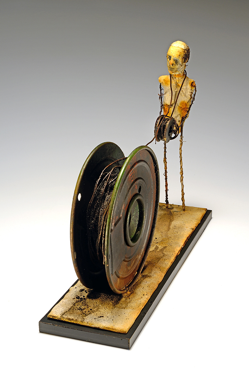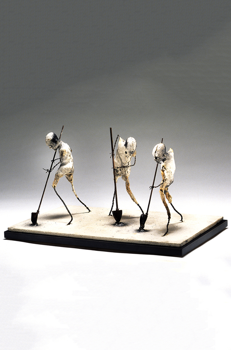 (Materials: Cast and sandblasted plaster, wax, and wire, hair graphite - and found objects if applicable)