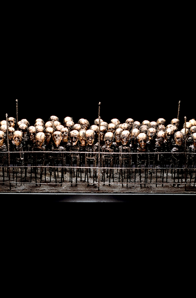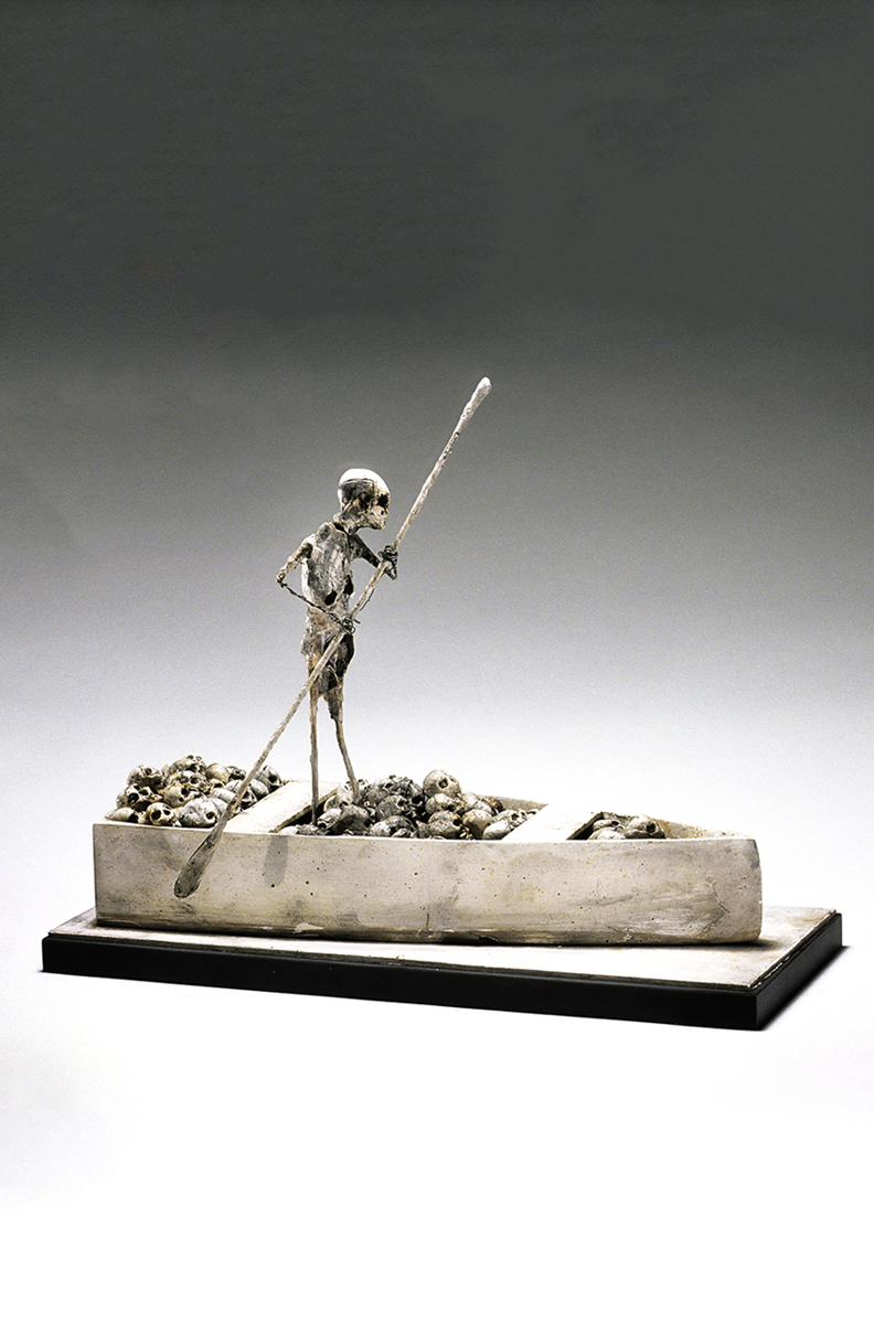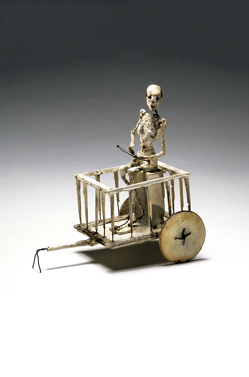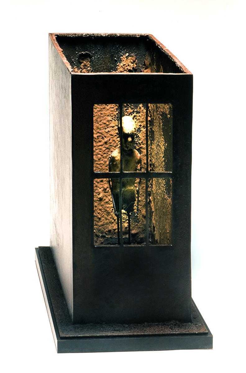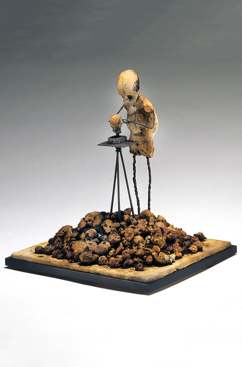 (Materials: Cast and sandblasted plaster, wax, and wire, hair graphite - and found objects if applicable)